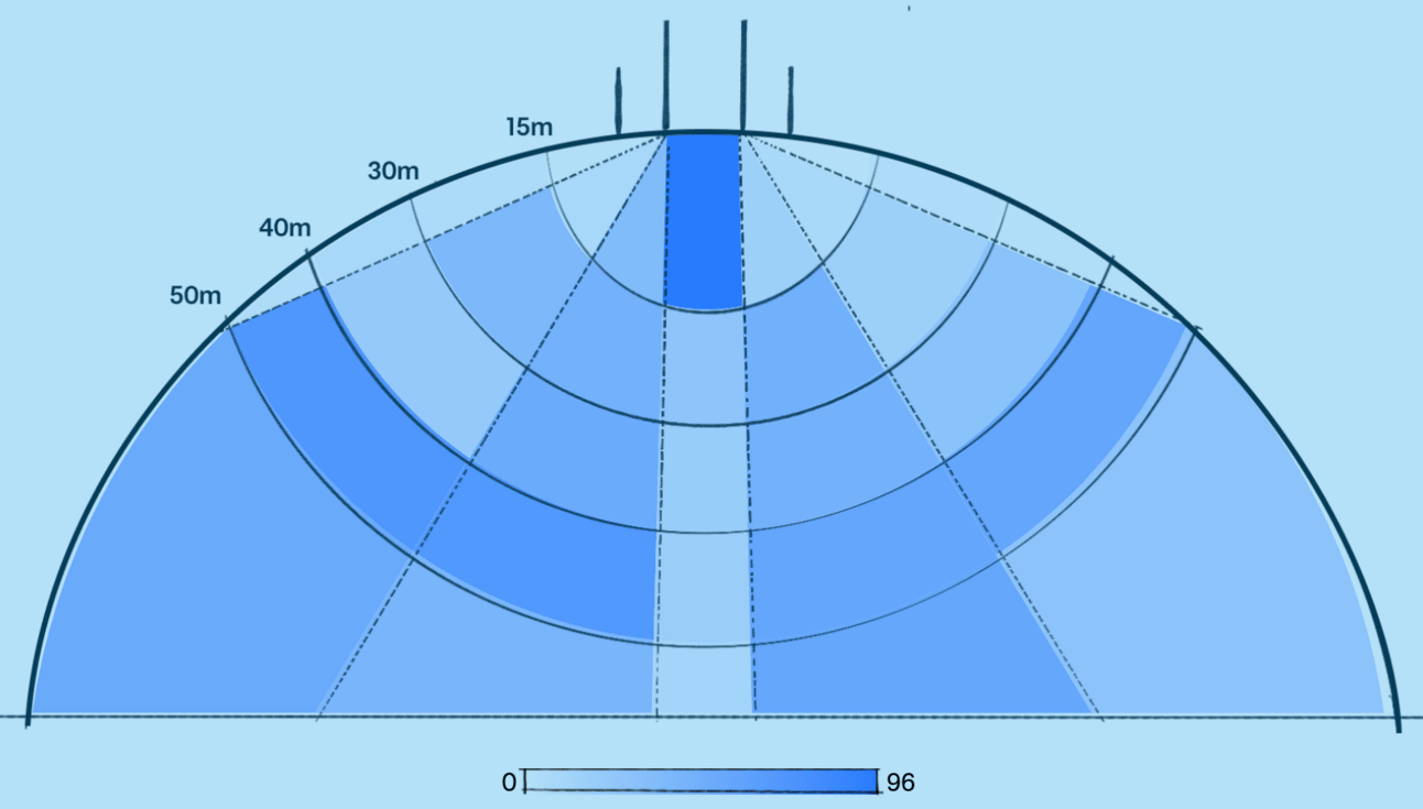 The area out to the 55m arc is 4,752m2 - 21% larger.
