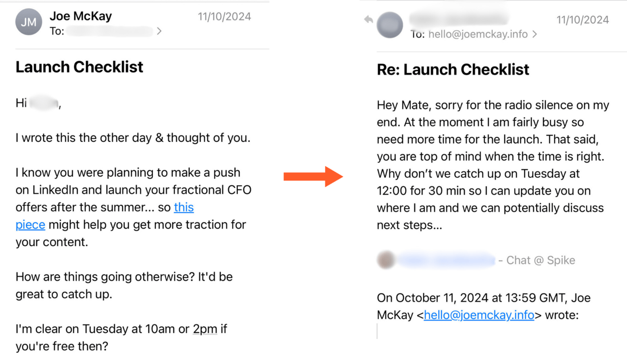 I emailed a lead who went cold after I’d pitched him my Ghostwriting services. I sent him a previous edition of The Thought Follower relevant to his situation & suggested a catch up.
